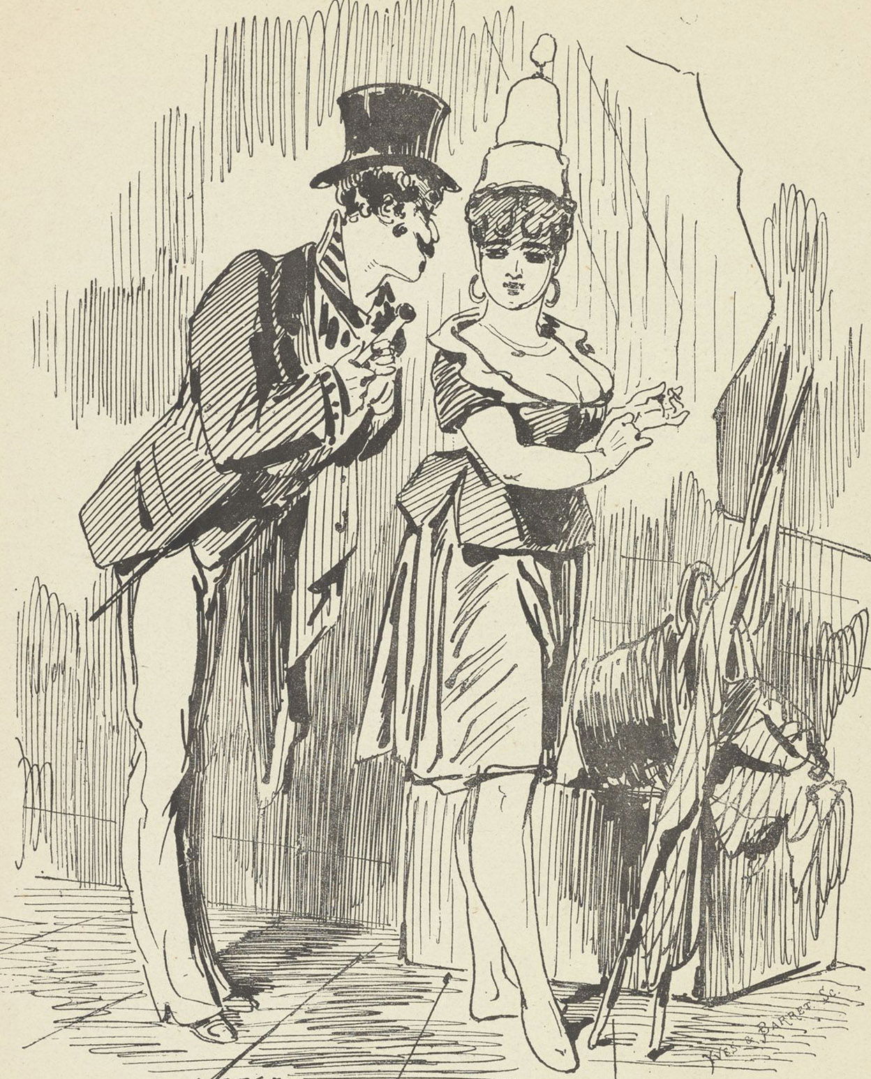 Comment ! ni ton chapeau, ni ta résille ! Tu nous la f…ais bonne, toi ! 300 francs de cheveux que je viens de m’acheter la semaine dernière ; et tu crois que j’vas m’amuser à cacher ça !