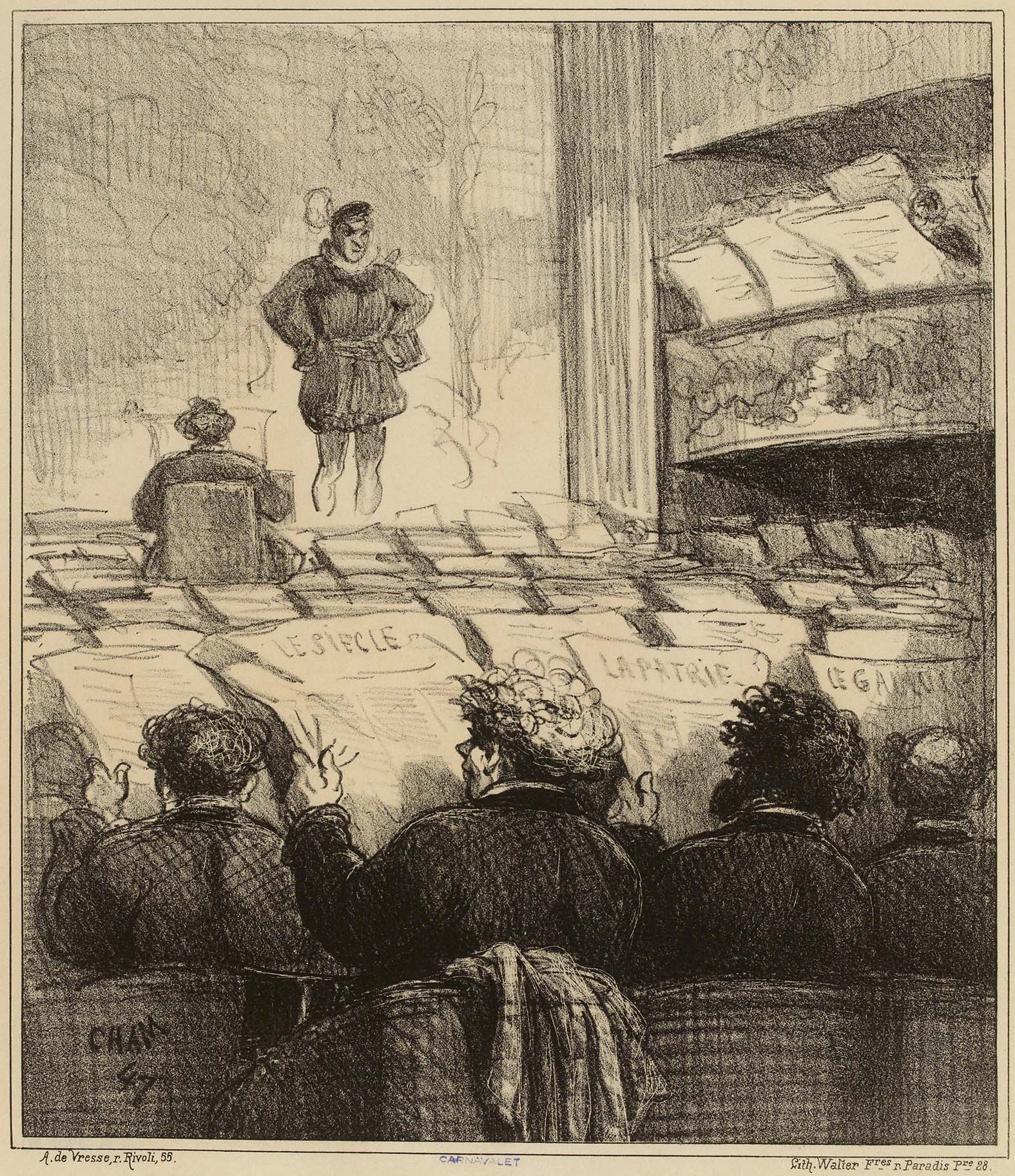 ‘Une salle de spectacle 24 heures après les élections’ Cham (Amédée Charles de Noé, dit) , Dessinateur-lithographe Arnauld de Vresse , Editeur. Walter frères , Imprimeur-lithographe. Entre 1864 et 1869. Musée Carnavalet.