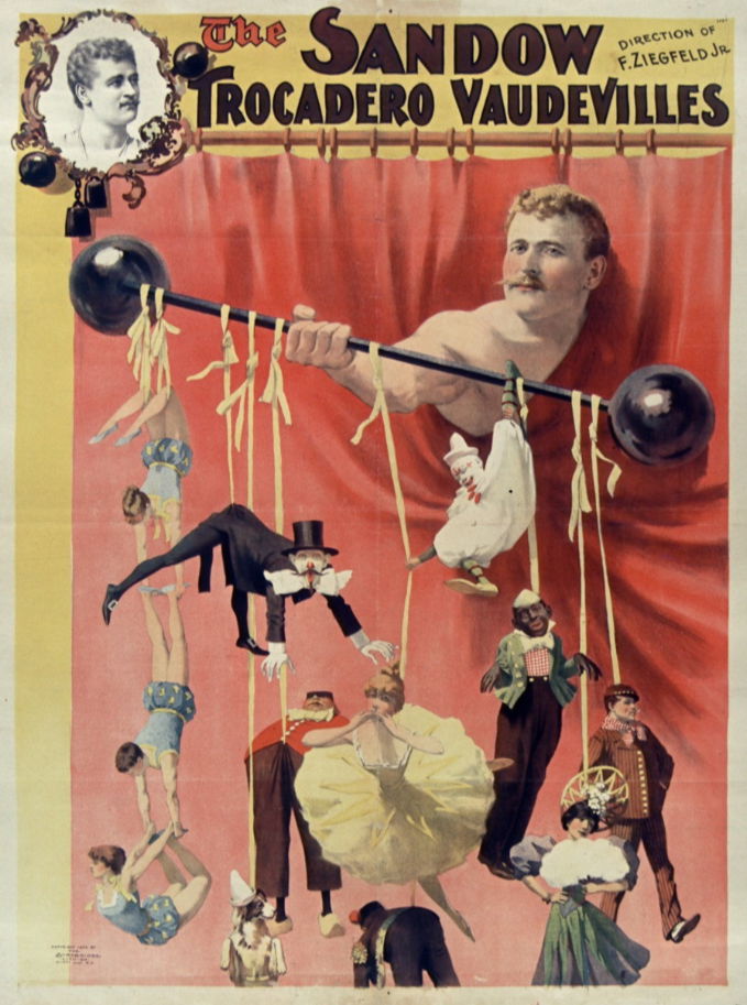 The Sandow Trocadero Vaudevilles, Academy of Music. Affiche non identifié. 1894. Source gallica.bnf.fr / BnF