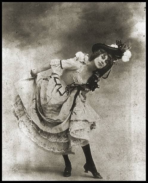 En 1889, à l'ouverture du Moulin Rouge, La Goulue est engagée et devient rapidement la vedette incontestée du lieu. Avec son partenaire Valentin le Désossé, un contorsionniste au physique longiligne, elle forme un duo iconique et fait du French Cancan sa marque de fabrique. Ses figures audacieuses, comme le "coup de cul" (où elle lançait sa jambe en l'air pour révéler sa culotte ornée d'un cœur brodé), enflamment le public.
