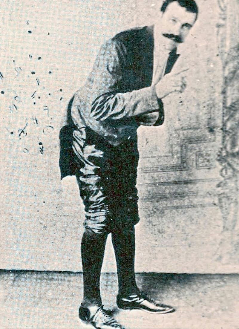 Dans les années 1890, il monte à Paris et se produit au Moulin Rouge. Son numéro est construit, minuté, presque scientifique. Il imite le canon, l’orage, la tempête. Il joue des airs connus à l’aide d’un petit tuyau relié à un ocarina. Il éteint des bougies à distance. Il récite même des fables, ponctuées d’effets sonores calculés.