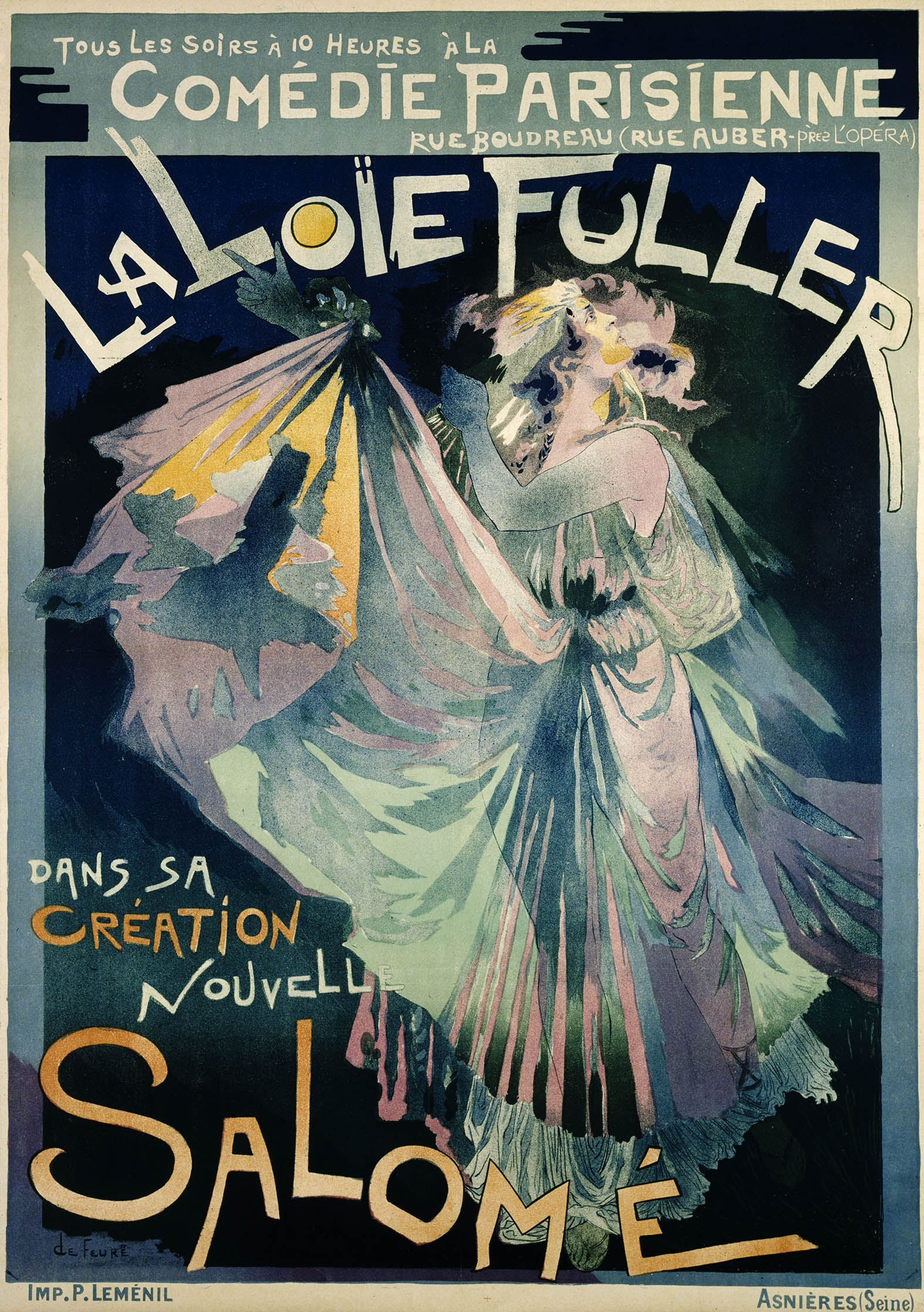Tous les soirs à 10 heures à la Comédie Parisienne. La Loie Fuller. Dans sa création nouvelle Salomé. Van Sluyters, Joseph (dit Georges de Feure) , Dessinateur Imprimerie Paul Lemenil , Imprimeur En 1895 Musée Carnavalet, Histoire de Paris