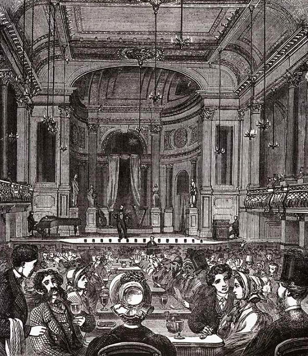 Café-concert : un spectacle de proximité, intime, mêlant chansons, numéros comiques et curiosités, au plus près du public.
