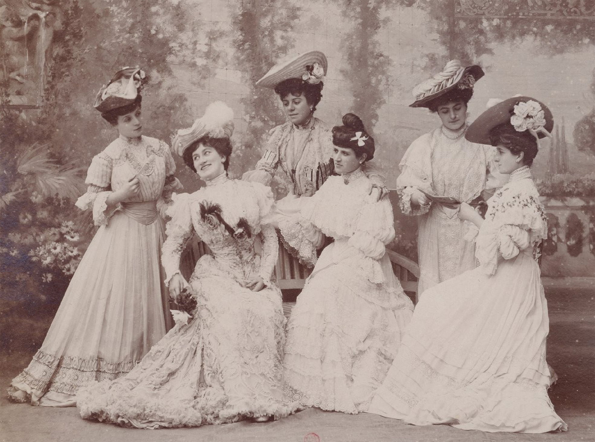 M. (et) M(lles) Langanne - Janot - L. Maude - Jane Morris - Ael – Gandon. Atelier Nadar. 1898. Source gallica.bnf.fr / BnF.