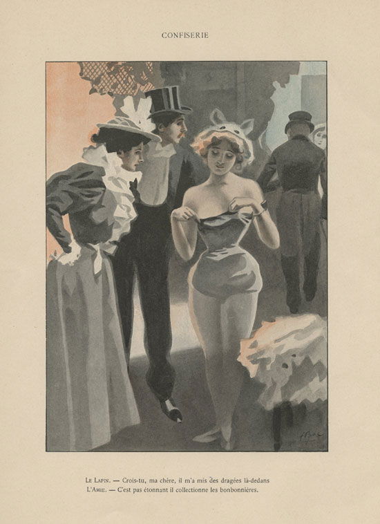 Confiserie Le lapin : Crois-tu, ma chère, il m’a mis des dragées là-dedans L’amie : c’est pas étonnant il collectionne les bonbonnières.