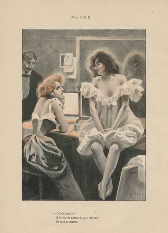 Ha ! Mesdames et Messieurs ! Comme vous allez vous amuser ! On va vous montrer des belles pécheresses, des langoureuses cigales, des vierges folles, d’adorables poupées, d’exquises frimousses, papillotantes et frivoles et, alors, vous allez vous dire que voilà un joyeux petit peuple de fantaisistes étourdies, qui brûlent insouciantes et échevelées les stations de leur vie singulière sur des coursiers emportés !... Oh ! mes bonnes Mesdames, mes bons Messieurs ! Quelle erreur que la vôtre ! Excellente mère, épouse irréprochable, impeccable bourgeoise et enfin fonctionnaire d’une Maison Nationale, dame patronnesse d’un comité d’encouragement et officier d’Académie, voilà leur rêve ! Et encore, si elles ne faisaient que de rêver ! Mais c’est qu’elles font souvent pour de bon ce qu’elles rêvent en silence, les petits misérables, et bientôt sans doute les bourgeoises de la rue du Sentier rempliront à leur tour les cabarets à la mode du bruit de cette folie tapageuse dont les vieux messieurs de l’Empire nous parlent tant… faute de mieux, peut-être !...