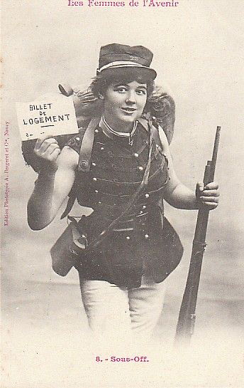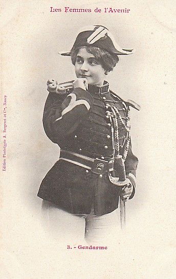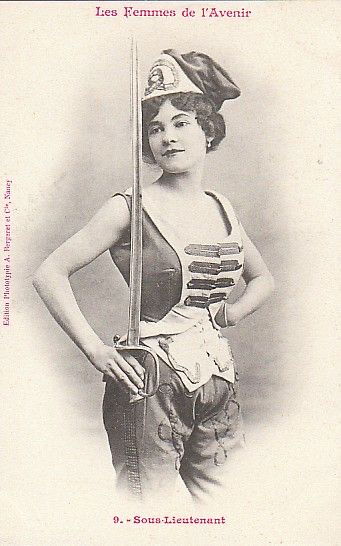 Ces images célèbrent la « Femme Nouvelle » de la Belle Époque : audacieuse, déterminée, s’appropriant les symboles d’autorité. L’uniforme n’est plus un simple costume. Il devient l’annonce d’une indépendance à venir.
