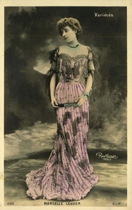 Dans sa robe lilas brodée et ses tulles sombres, Marcelle Lender incarne l’élégance théâtrale des Variétés. Actrice et chanteuse en vue à la fin du 19e siècle et au début du 20e siècle, elle fut aussi immortalisée par Toulouse-Lautrec. Une figure raffinée du Paris artistique et mondain.
