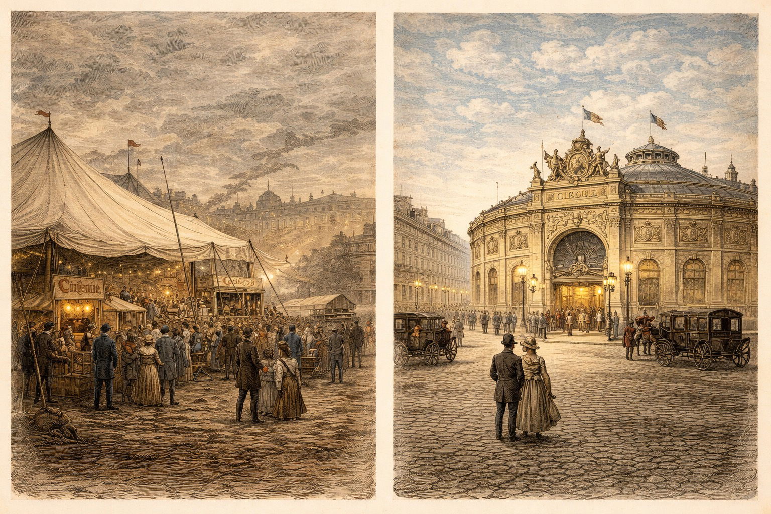 Enfin, Paris est une vitrine internationale. Un cirque en dur devient un symbole de modernité et de puissance culturelle. Là où la province accueille le cirque de passage sous chapiteau, la capitale érige des temples du spectacle. Cela n’empêchera jamais les cirques en toile d’exister. Mais à Paris, au 19e siècle, le cirque devient un bâtiment, presque un monument.