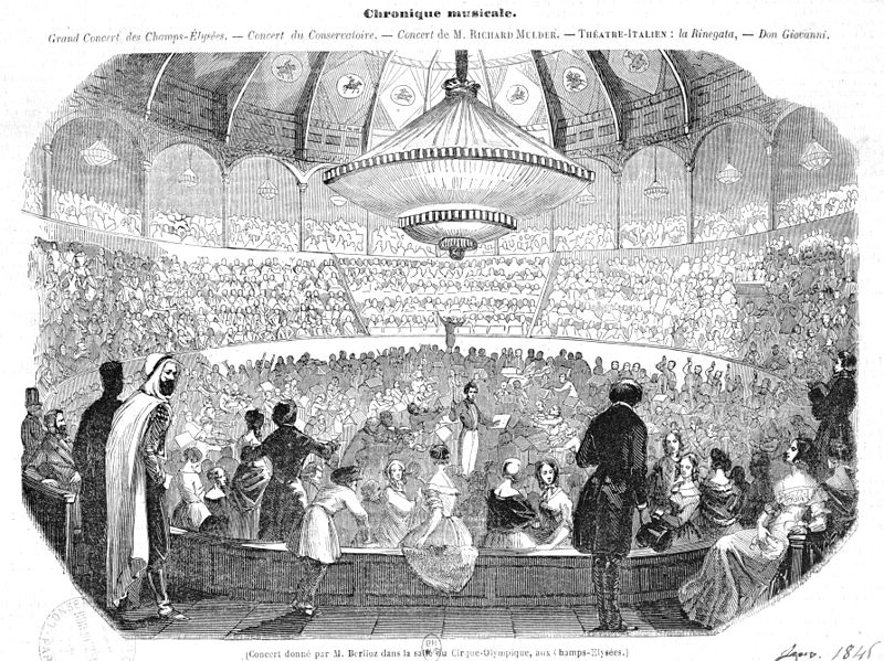 1845 : L’acoustique du Cirque d'Été était si bonne qu'Hector Berlioz y donne une série de concerts.