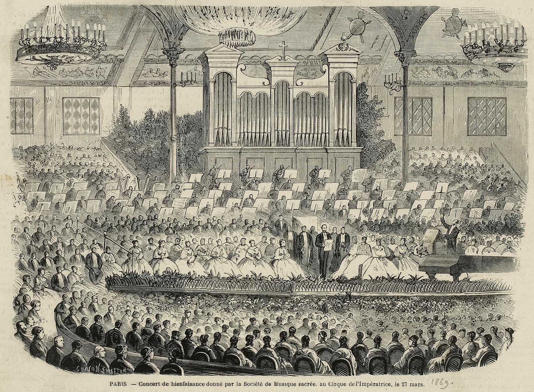 Paris - Concert de bienfaisance donné par [...] au cirque de l'Impératrice, le 27 mars. Best, Cosson, Smeeton (BCS), Graveur. Anonyme , Editeur. En 1869. Musée Carnavalet, Histoire de Paris.
