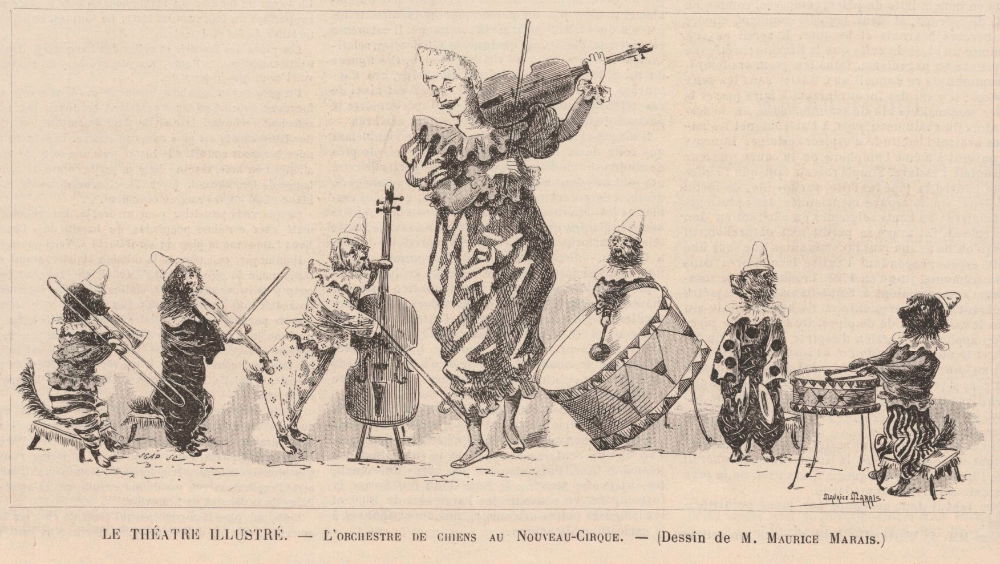 L’Orchestre de chiens au Nouveau Cirque, fin du 19e siècle.