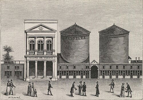 Outre ces douze théâtres, nous avons encore, comme en 1811, le Cirque-Olympique de MM. Franconi ; nous avons le théâtre de M. Comte ; nous pourrions même ajouter les Panoramas, le Cosmorama, le Diorama, si on comptait ces établissements pour des spectacles. Il y a toujours des cafés où l'on joue des pièces de théâtre ; tels sont, au Palais-Royal le café Montansier, et plusieurs autres ; sur les boulevards du Temple, le café d'Apollon, etc. Compterions-nous aussi les Ombres Chinoises de Séraphin, le Théâtre-Forain du Luxembourg, les danseurs de corde de madame Saqui, et les Funambules ?