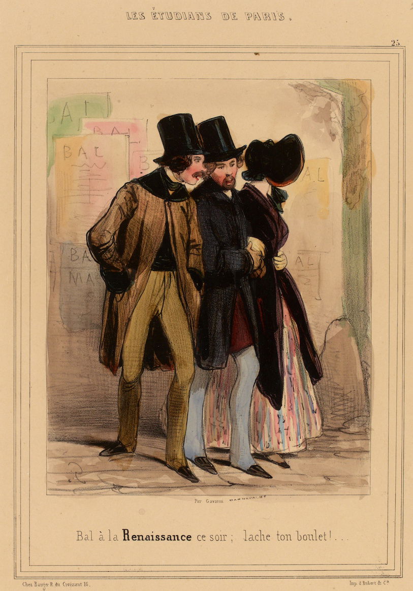 Bal à la Renaissance ce soi. Lâche ton boulet ! Dessinateur-lithographe : Gavarni (Hippolyte Sulpice Guillaume Chevalier). Entre 1839 et 1841 19e siècle Musée Carnavalet, Histoire de Paris