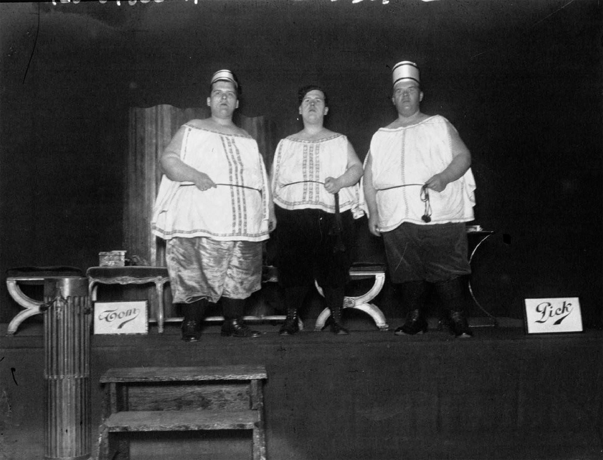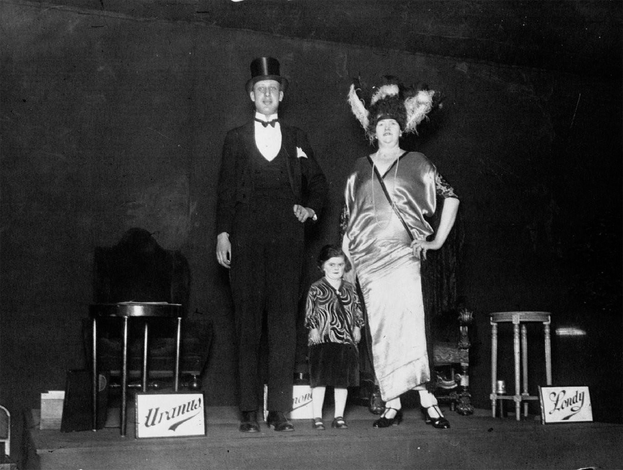 Les sources disponibles (photographies promotionnelles, cartes-souvenirs, programmes) n’identifient pas les artistes un par un, privilégiant l’image du groupe plutôt que les parcours personnels. Chaffer’s Wonder Midgets illustrent une forme aboutie de spectacle collectif de petite taille, où la différence corporelle devient un élément visuel central, intégré à des mises en scène festives et professionnelles.