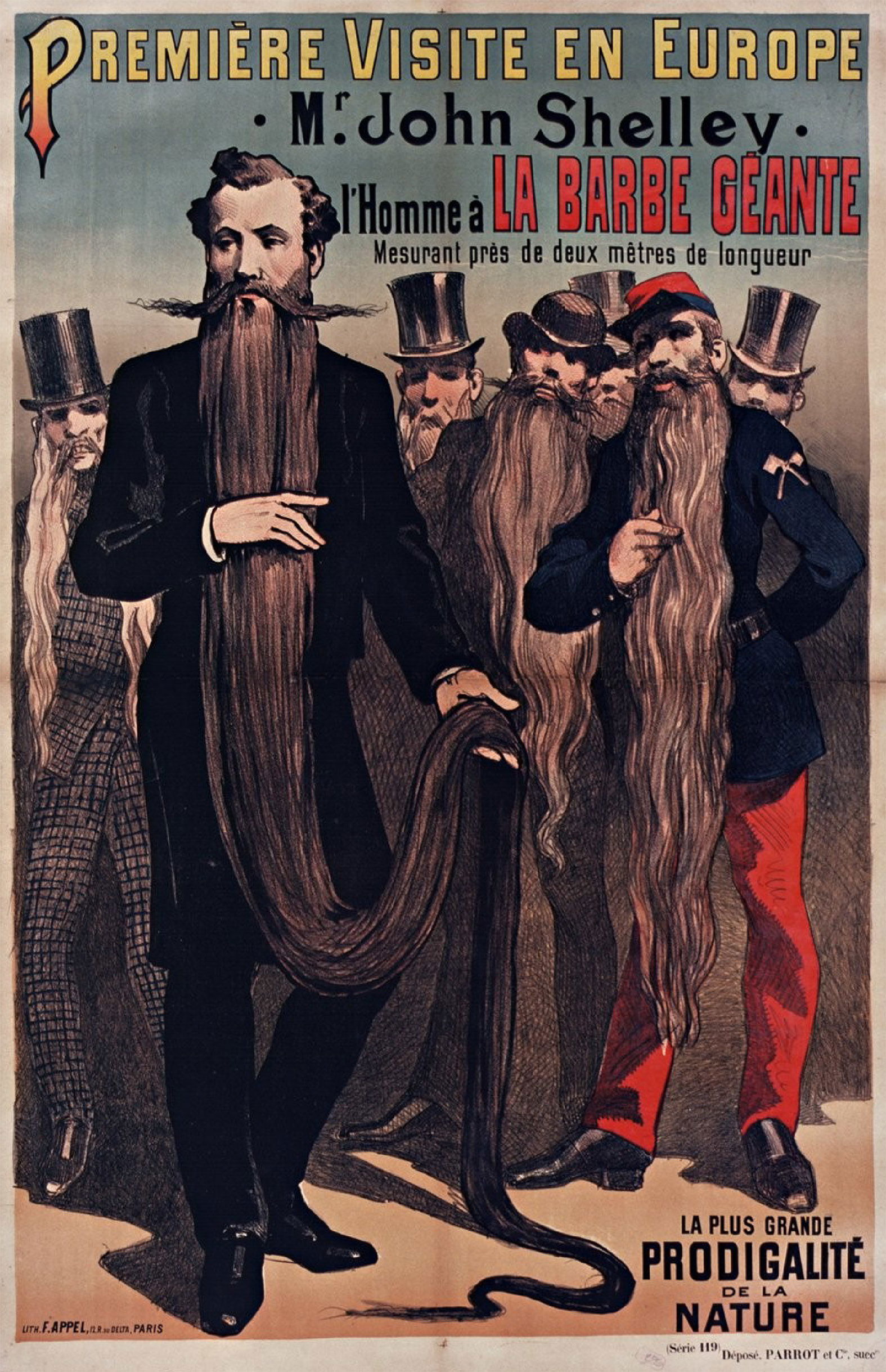 Première visite en Europe. Mr John Shelley : l'homme à la barbe géante... [Non identifié]. 1889. Source gallica.bnf.fr