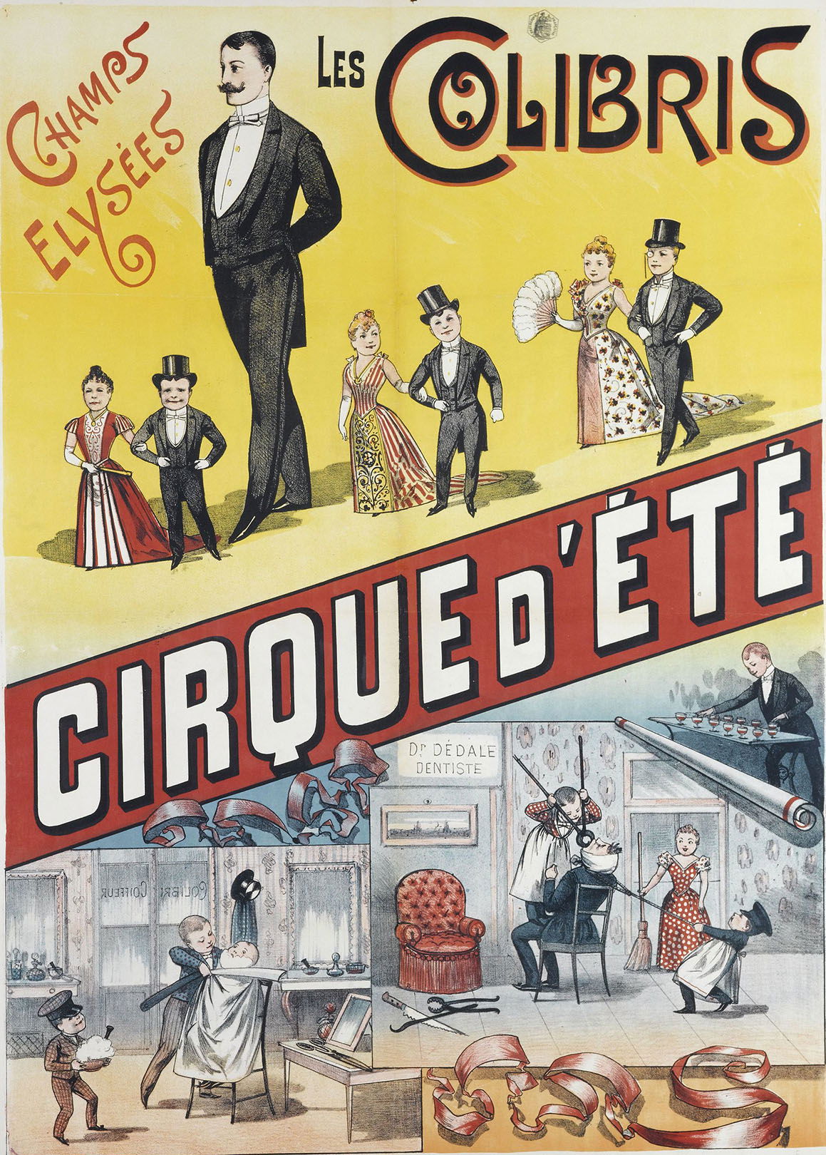 Les Colibris étaient une troupe d’artistes de petite taille, active à Paris principalement entre 1895 et 1905, durant la Belle Époque. Ils se produisaient dans des spectacles collectifs, notamment lors des cirques d’été des Champs-Élysées, où leurs numéros mêlaient danse, théâtre et situations burlesques. Fonctionnant comme un ensemble, la troupe privilégiait la mise en scène collective plutôt que l’individualité. Les artistes étaient présentés sous le nom unique des Colibris, sans que leurs identités personnelles soient mentionnées dans les sources connues, pratique courante dans les spectacles populaires de l’époque. Les Colibris illustrent la place accordée aux personnes de petite taille dans les divertissements parisiens de la fin du XIXᵉ siècle, non seulement comme curiosités, mais comme artistes à part entière, intégrés à des mises en scène élaborées et festives.