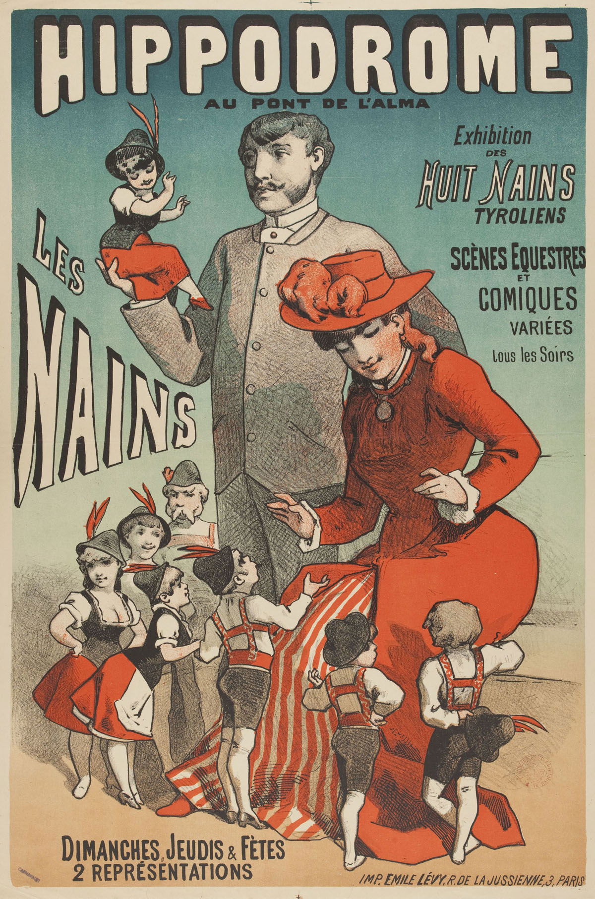 Hippodrome au pont de l’alma. Les nains. Exhibition Choubrac, Alfred , Dessinateur Lévy, Emile , Imprimeur Entre 1873 et 1883 Musée Carnavalet, Histoire de Paris