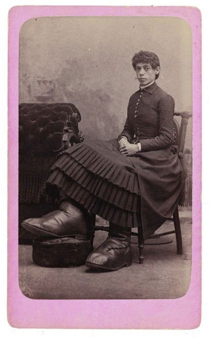 Cette photographie de la fin du XIXᵉ siècle représente Fanny Mills, surnommée « la fille aux grands pieds de l’Ohio ». Assise avec calme et dignité, elle est mise en scène de façon à accentuer la taille spectaculaire de ses pieds, devenus l’élément central de son attraction.